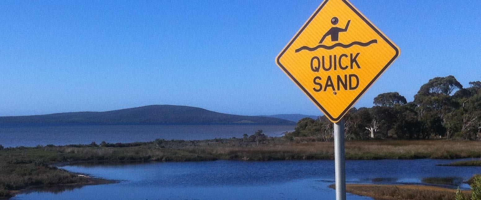 Construction was being done on a man-made lake near my brother’s house, and all of the water had been recently drained out – leaving an enormous empty “field” of dirt and mud. Curiosity drew us closer and closer to this rare sighting, and before we knew it we were all stepping out into the mud. Near the edge, it was firm enough to walk on. But as we walked farther and farther into the mud plain, my 3 year old suddenly yelled for help. She was sinking, and the more she struggled, the more stuck she got. Replays of movies with quicksand in them flashed in my head as I slowly headed towards her – testing each new spot before I shifted my weight onto that foot. I couldn’t reach her without sinking a little in the deep mud, but fortunately I was able to pull her out quickly enough that I didn’t get stuck too. We lost a shoe that day and got disgustingly muddy, but we will never forget this important lesson: not all ground is safe to walk on!